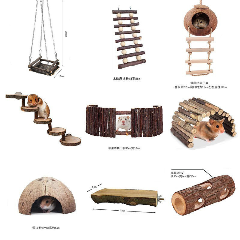 Hamster Tree Cave Mainan Beruang Emas Hewan Peliharaan Kayu Cemara Menghindari Rumah Tumpukan Sangkar Tumpukan Lansekap Terowongan Gosok Gigi