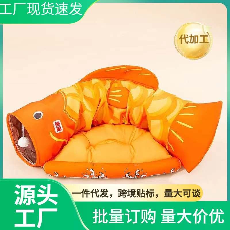Menyenangkan kucing empat musim terowongan koi tertutup yang dapat dilepas dan dicuci rumah sembunyi kucing multi-kucing keluarga kucing saluran naga bergulir