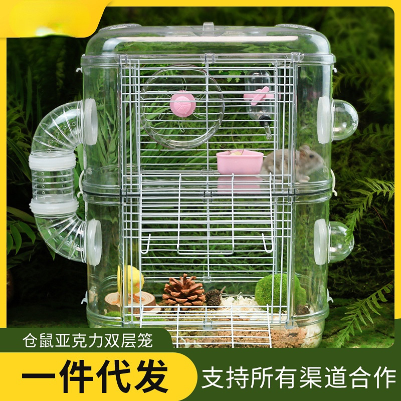 Kandang Hamster Kecil Luar Rumah Transparan Rumah Portabel Beruang Emas Dua Penggunaan Mewah Produsen Grosir