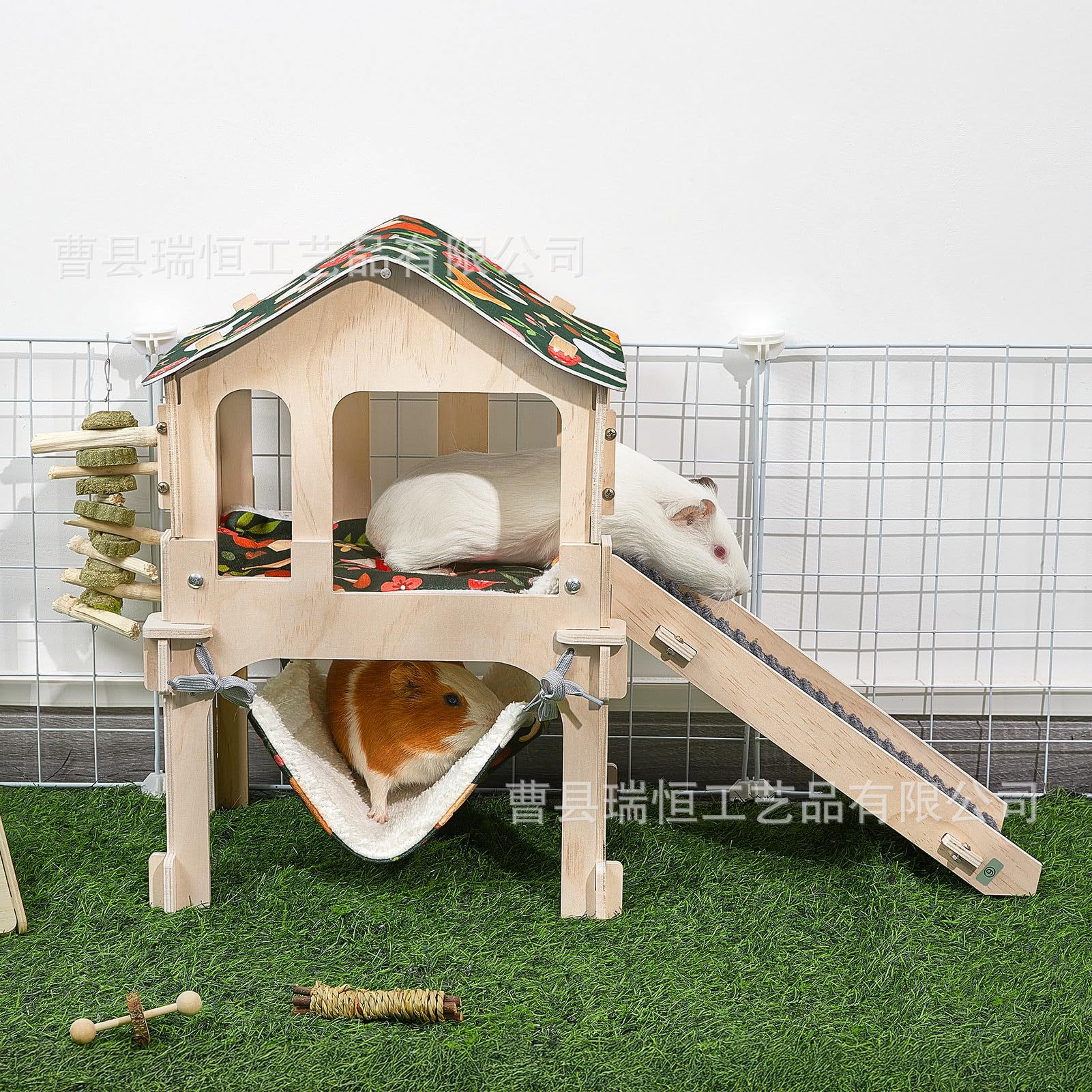 Tempat persembunyian babi guinea kayu tangga panjat hamster dua lapis