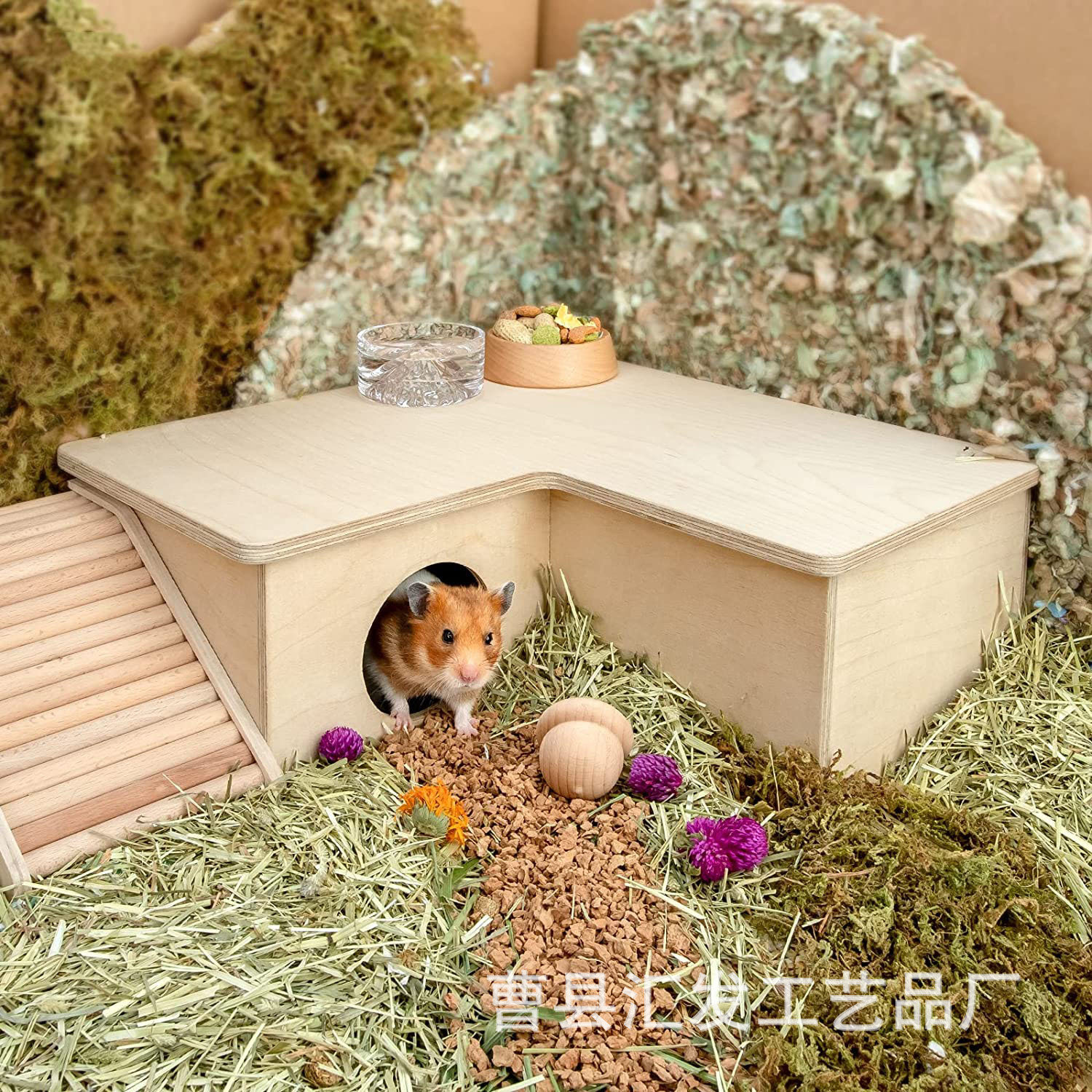 Kandang rumah hamster kayu padat mainan kayu set sarang hamster kayu perlengkapan dekorasi lanskap rumah keselamatan rumah