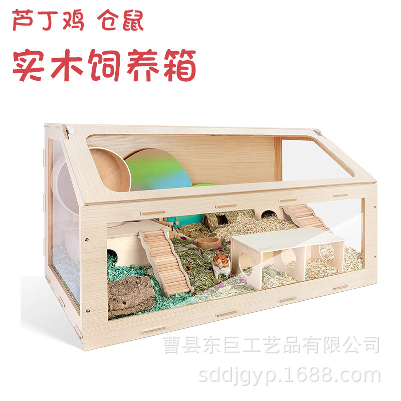 Pasokan langsung pabrik kotak hamster kayu kotak pemeliharaan ayam rutin kotak makan kotak menonton kayu transparan kotak hewan peliharaan