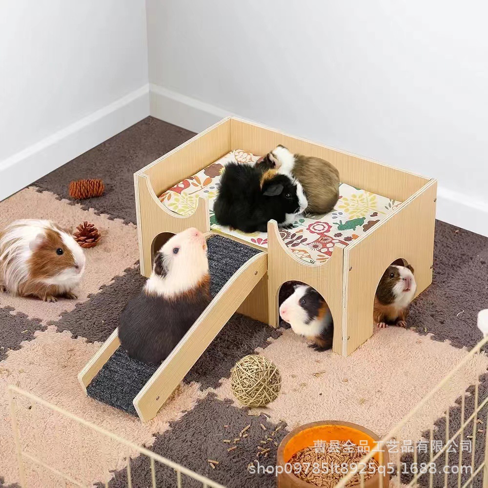 Rumah kayu hamster lintas batas kandang beruang emas kandang kelinci landak Totoro guinea pig mewah khusus sarang kulit villa musim panas