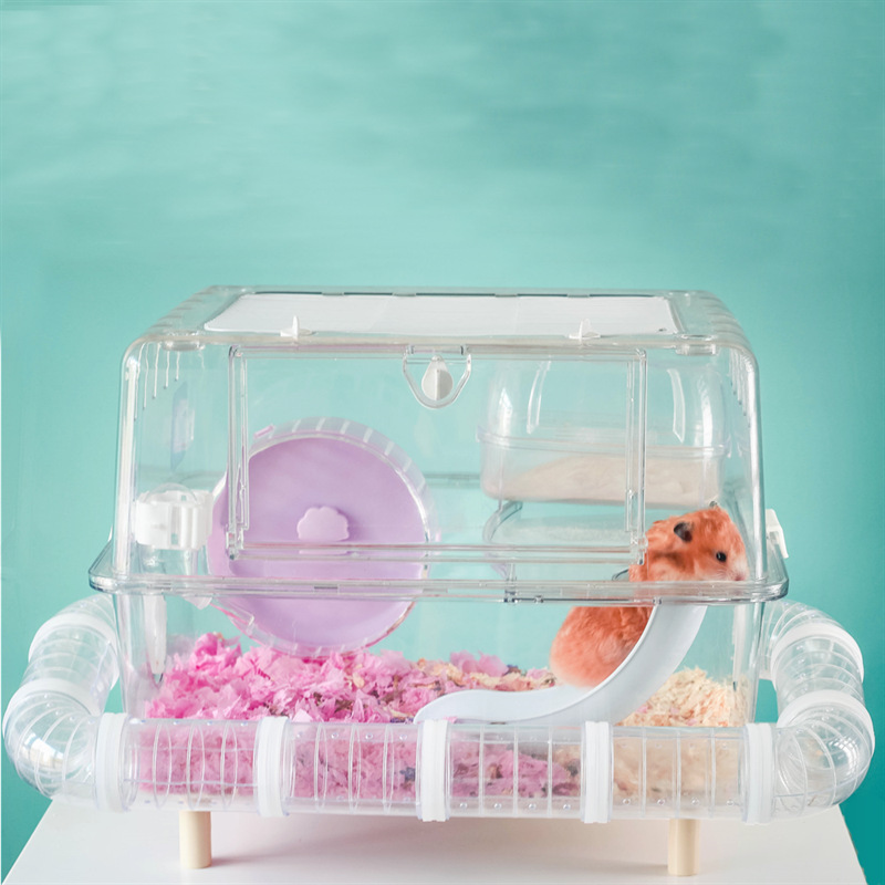 Hamster kandang emas murah super besar rumah khusus akrilik dengan perlengkapan villa mewah dua lantai transparan