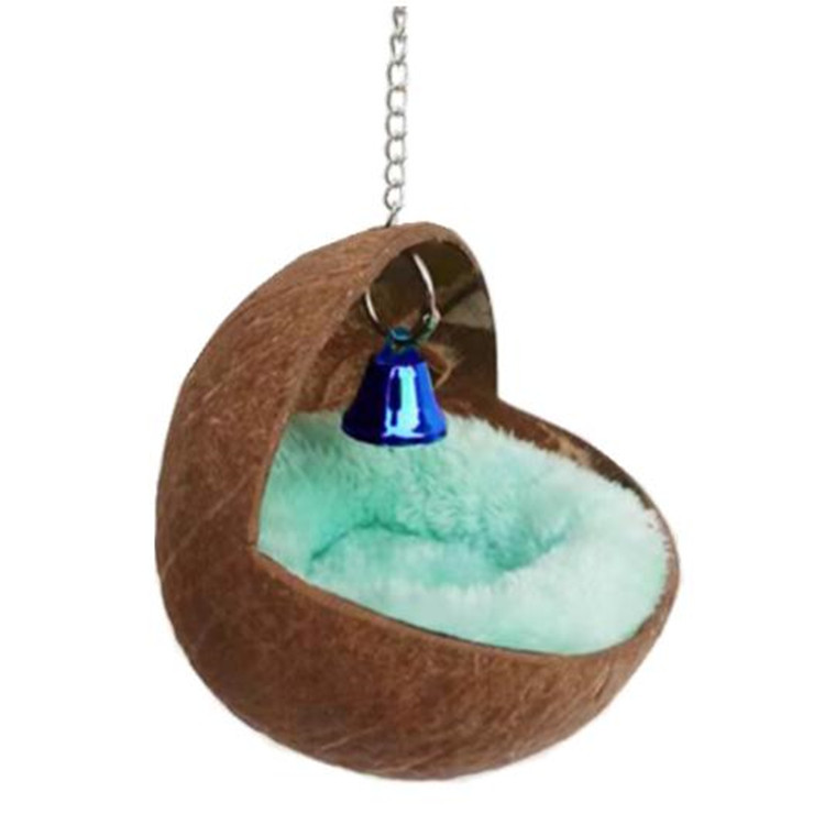 Sarang cangkang kelapa hewan peliharaan kecil, sarang tupai Tianzhu Belanda, sarang tidur hangat cangkang kelapa, sarang burung beo, sarang setengah lingkaran