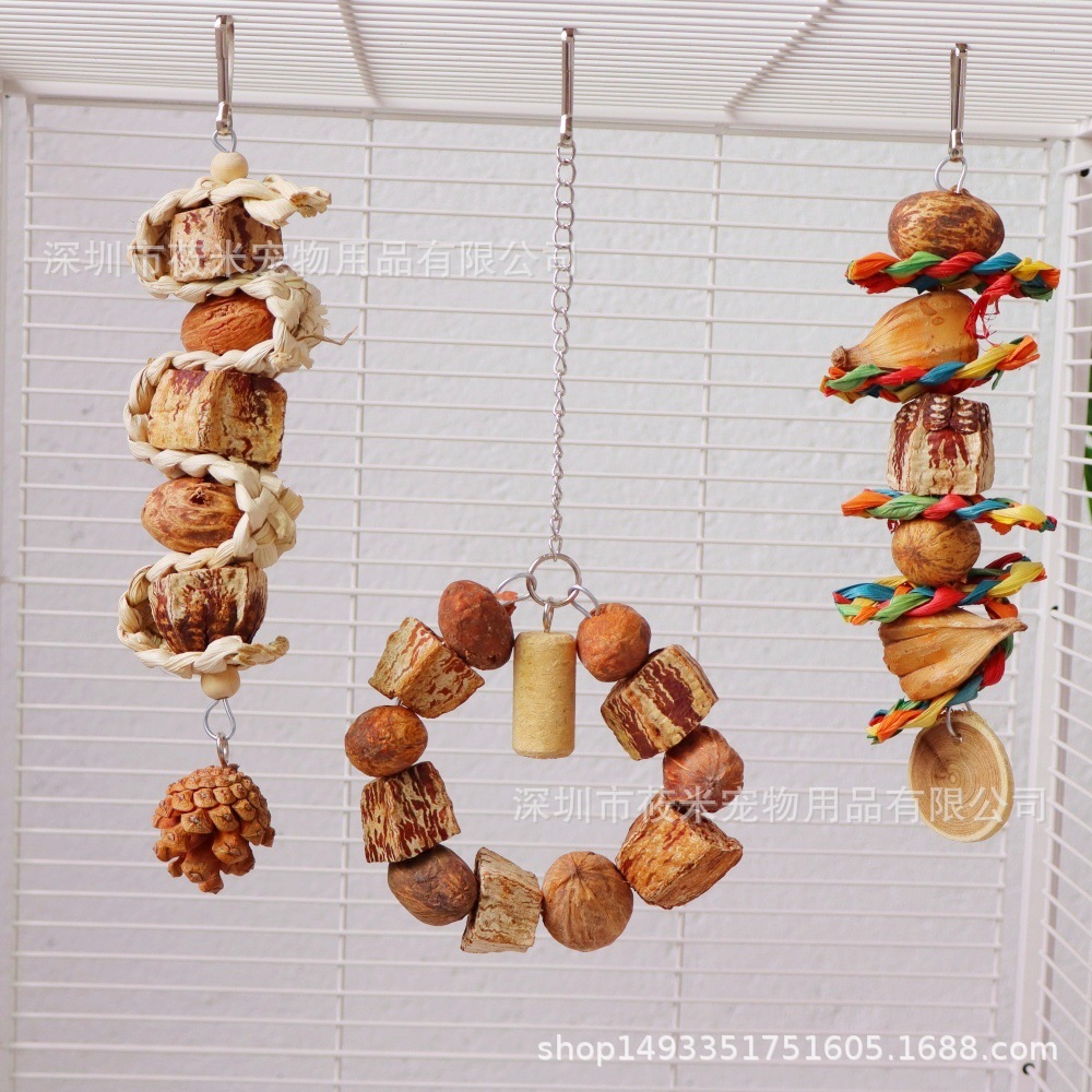 Mainan burung beo mainan burung kayu buah menggigit tali sangkar burung molar bermain aksesoris persediaan grosir