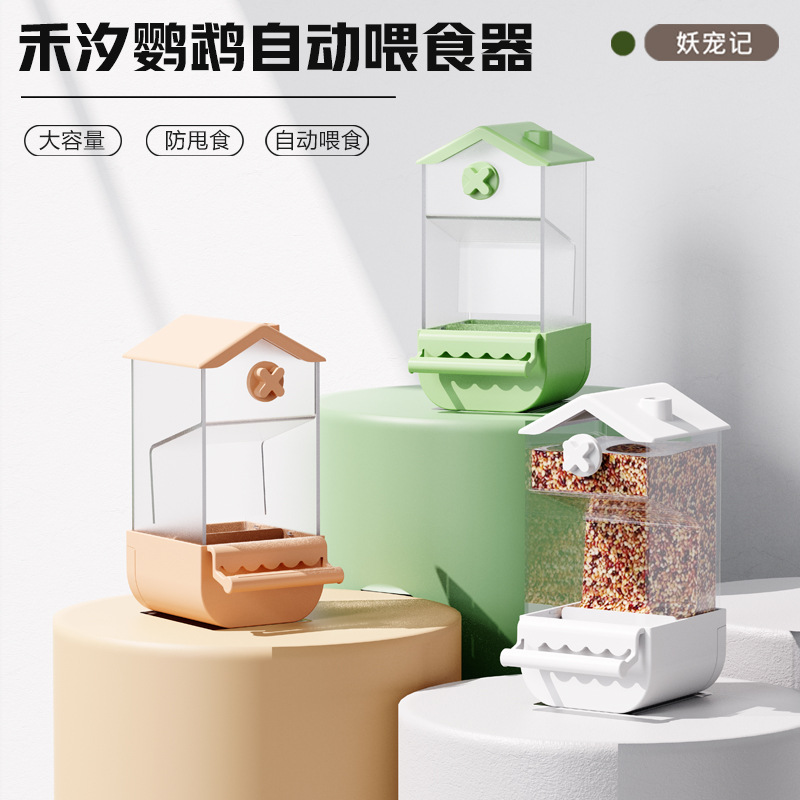 Pemberi makan otomatis burung mangkuk makanan antipercikan antipercikan perlengkapan pemberi makan burung bayan otomatis