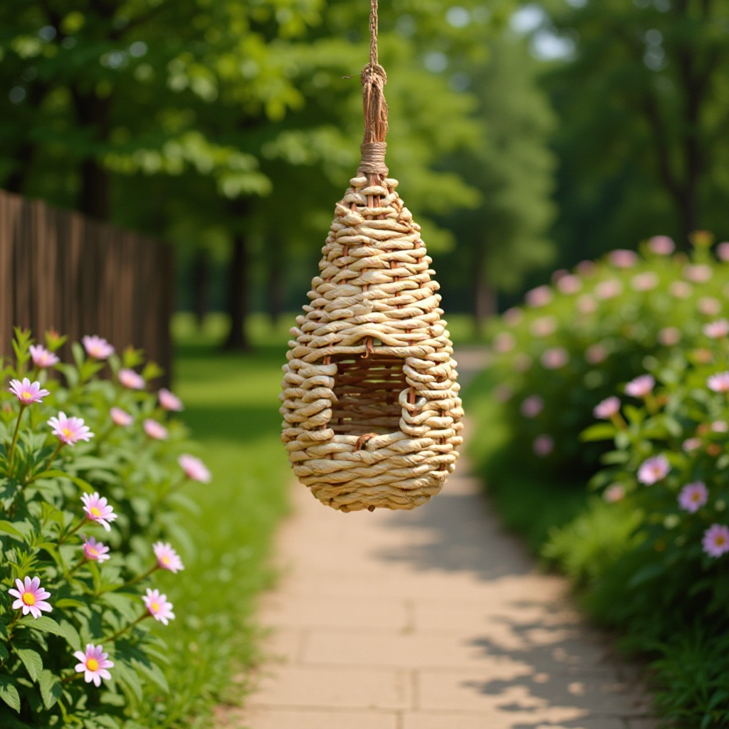 Sangkar burung anyaman jerami Temu TikTok, kandang burung buatan tangan kreatif, dekorasi taman, rumah burung ramah lingkungan, perlengkapan hangat untuk burung