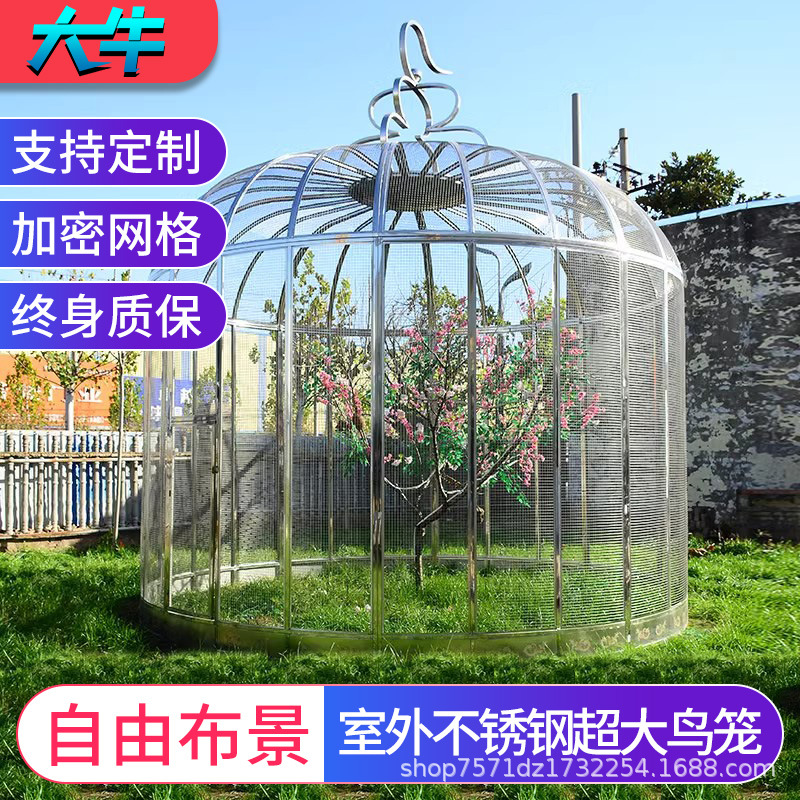 Kandang burung besar besi tahan karat ukuran besar luar ruangan taman Villa Pastoral ekologis burung merak grid kandang burung beo besar