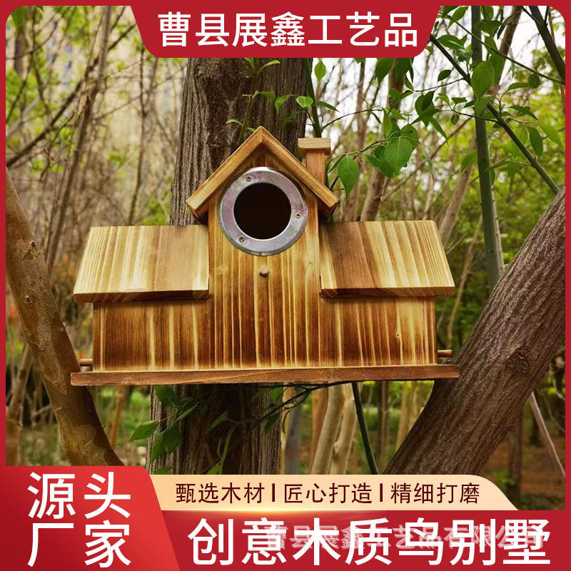 Lintas Batas Rumah Burung Kayu Luar Ruangan Kayu Solid Burung Sangkar Burung Dekorasi Perkembangbiakan Kayu Sarang Burung Dinding Gantung Sarang Burung Pabrik Grosir