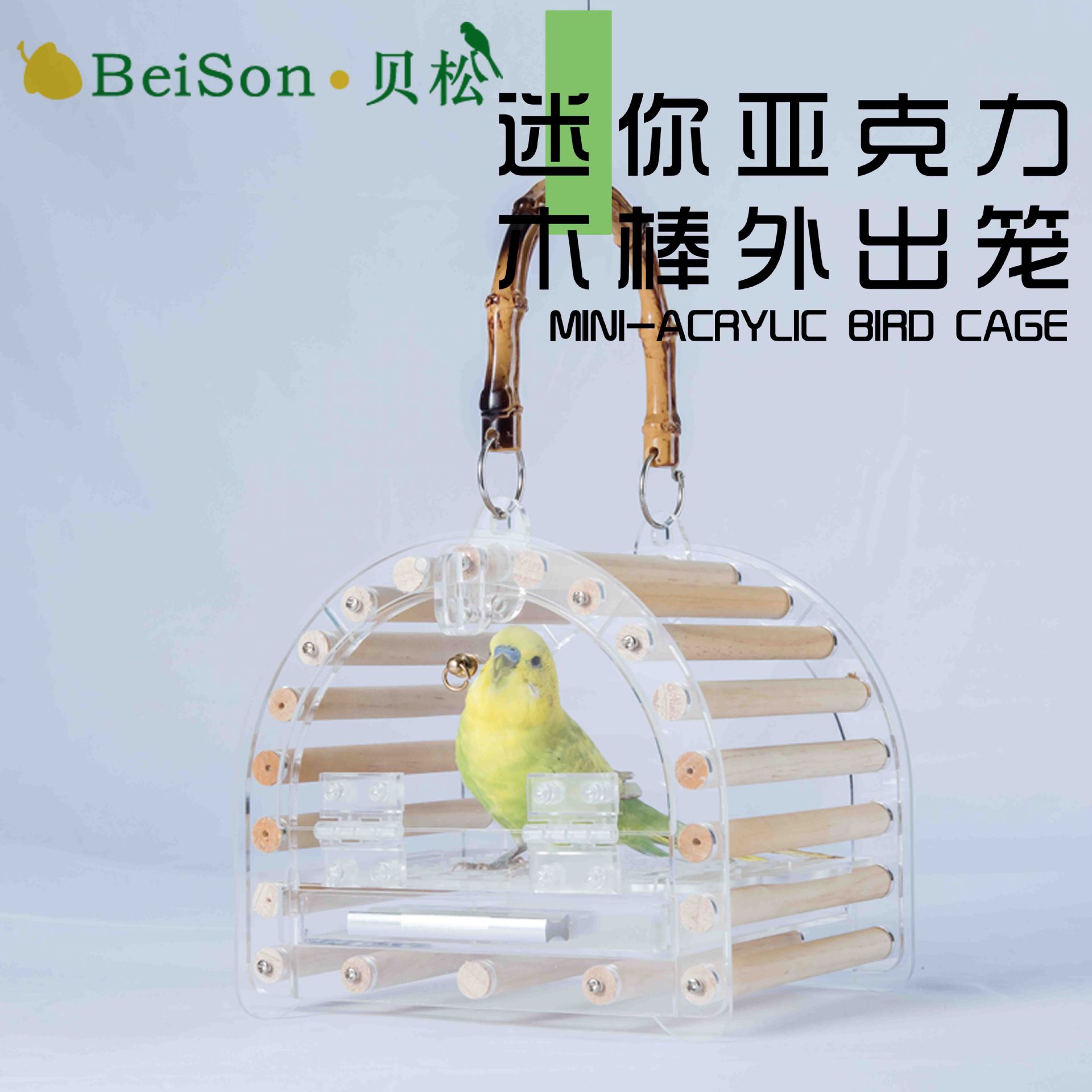 Kandang tamasya burung bayan akrilik kandang burung bayan portabel kulit harimau peony ornamental mini luar ruangan kandang burung