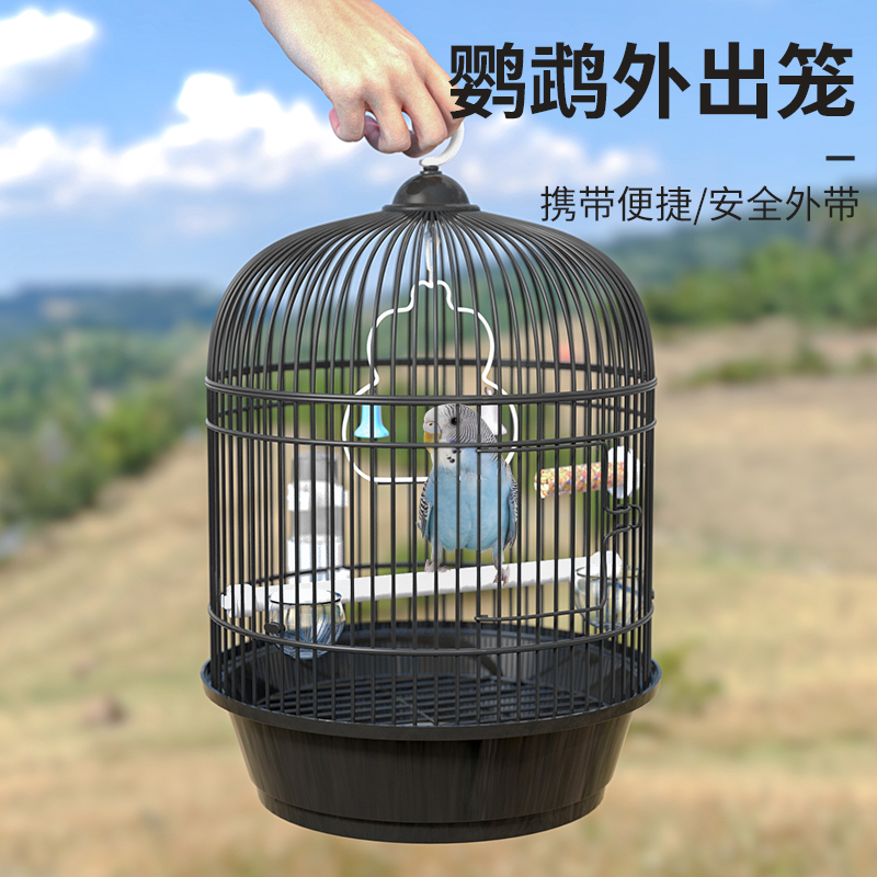 Sangkar burung beo tamasya kandang burung bayan portabel rumah tangga kulit harimau peony Xuanfeng berjalan pita luar bulat