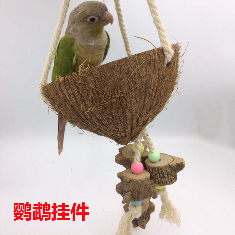 Mainan burung nuri natural gnawing destruction, cangkang kelapa kayu lada ayunan sarang burung molar