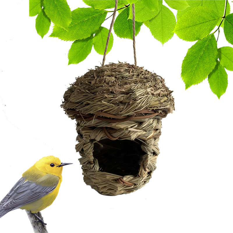 Sangkar burung anyaman jerami Temu TikTok, kandang burung buatan tangan kreatif, dekorasi taman, rumah burung ramah lingkungan, perlengkapan hangat untuk burung
