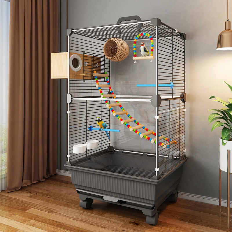 Sangkar burung besar mewah baja tahan karat lapisan ganda kandang burung beo besar saudara peony Xuanfeng kandang burung nuri kecil dan sedang