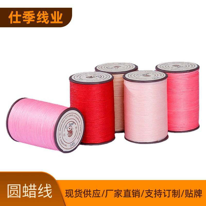 Benang lilin bulat buatan tangan 0.8mm 50 m, benang lilin bulat kulit kekuatan tinggi benang poliester benang jahit lilin