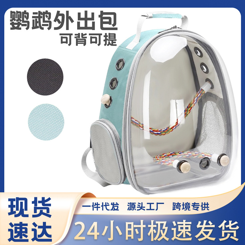 Tas Ekuter Parrot Khusus Lintas Batas Bahu Transparan Portabel Tali Luar Sangkar Burung Grosir Kulit Harimau Burung Beo Luar Kandang