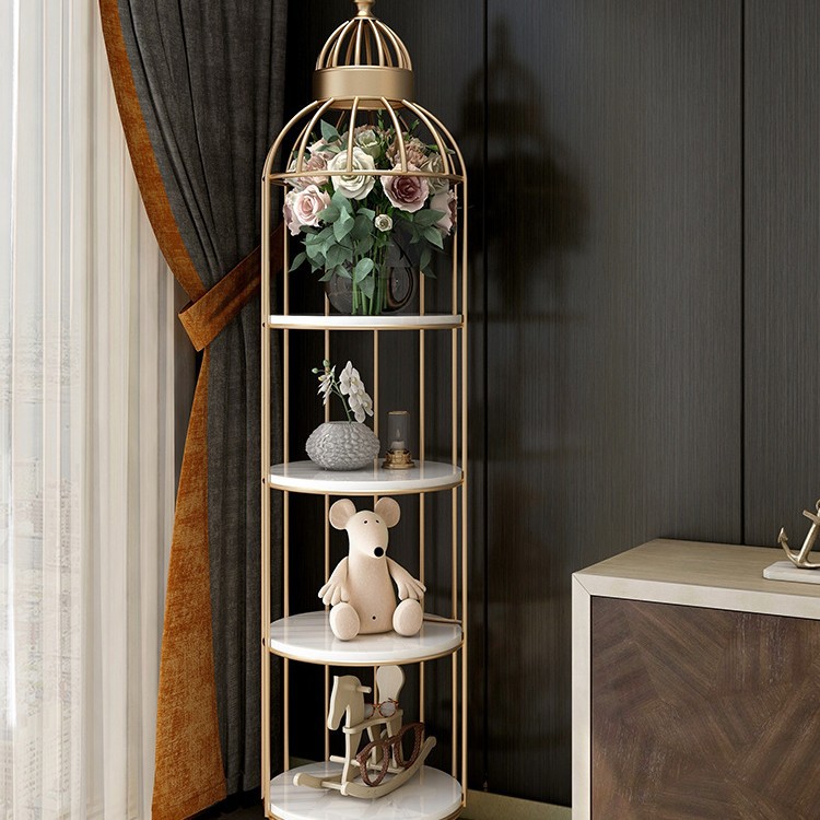 Rak penyimpanan kandang burung gaya Eropa utara rak bunga balkon banyak lapisan lantai retro besi rak dekorasi sudut ruang tamu kamar tidur