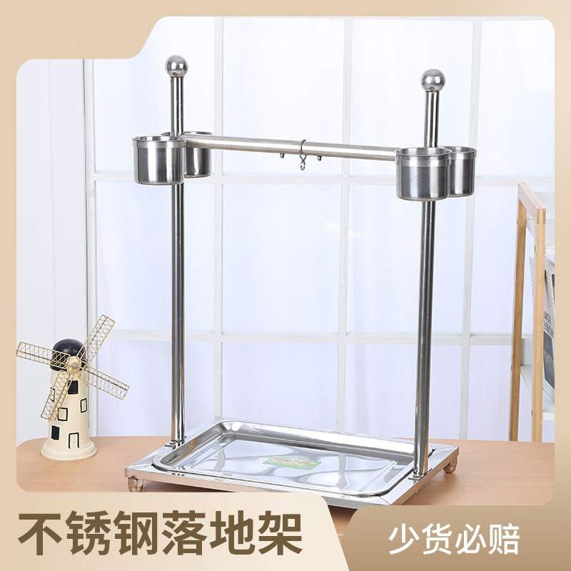 Pemberi makan Stainless steel, cangkir air burung bayan berdiri cangkir makanan klip melalui makanan mangkuk berdiri tongkat makanan cangkir air