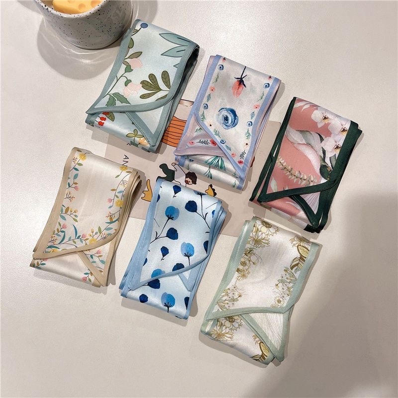 Ikat rambut syal sutra gaya pastoral musim bunga romantis syal panjang pita selendang kecil segar Korea ikat rambut
