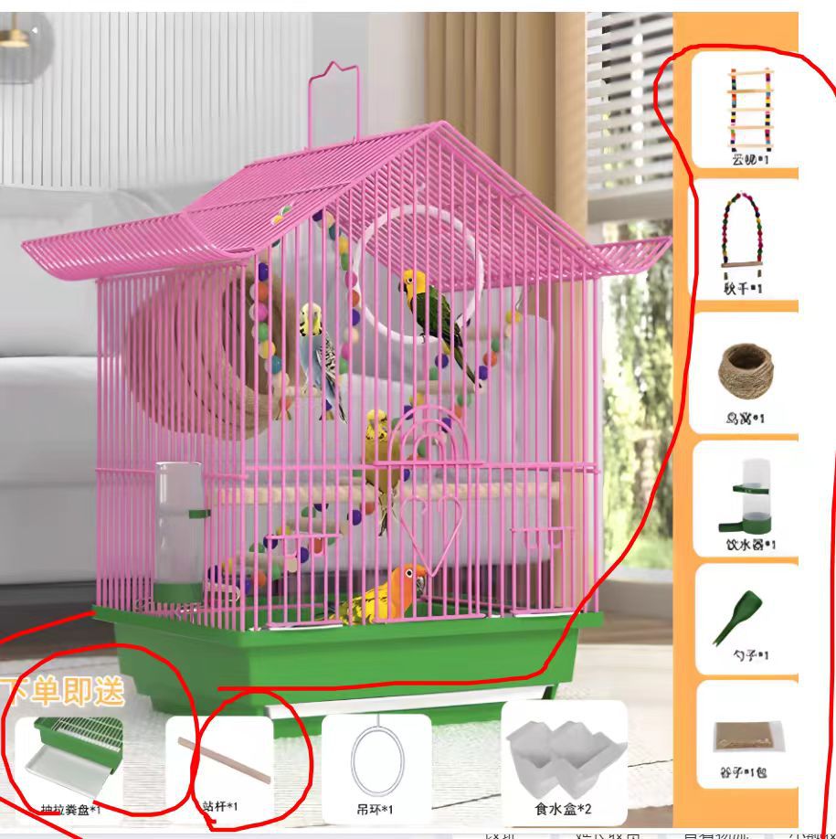Sangkar Burung Hewan Peliharaan Sangkar Burung Kulit Harimau Sangkar Burung Beo Peony Sangkar Burung Kecil Sangkar Burung Beo Portabel 102