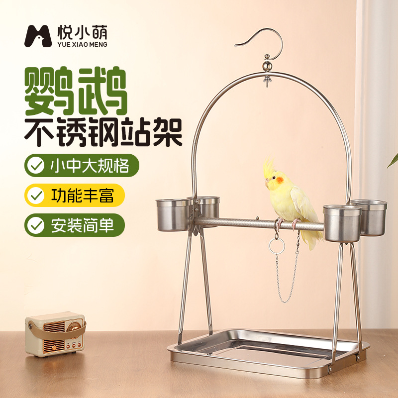 Yue Xiaomeng Parrot Rak Stasiun Stainless Steel Kandang Burung Portabel Luar Ruangan dengan Kait Platform Interaktif Pelatihan Burung Luar Ruangan