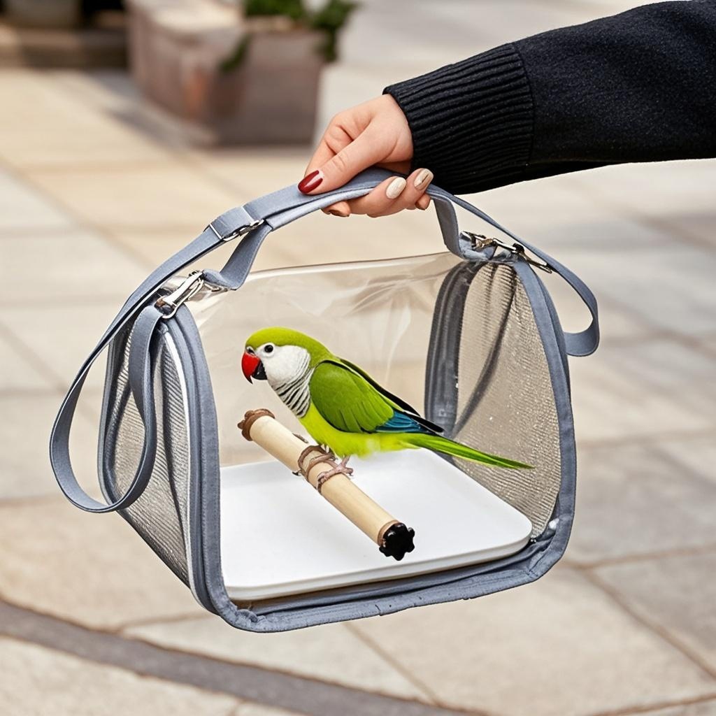 Parrot Transparan Keluar dari Sangkar Burung Biksu Xuanfeng Matahari Kecil Portabel dengan Tas Burung Tas Selempang Peony Kulit Harimau