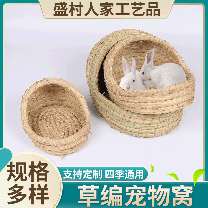 Sandal Totoro sarang rumput hewan peliharaan sarang kucing kandang jerami kecil sarang anjing empat musim Universal kandang jerami kelinci