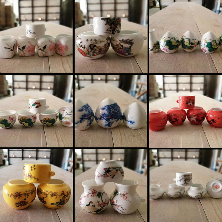 Bordir mangkuk makanan burung bordir stoples makanan burung bordir cangkir makanan burung bordir mata tinggi putih tiga Lima potong set cangkir makanan burung kandang mata bordir