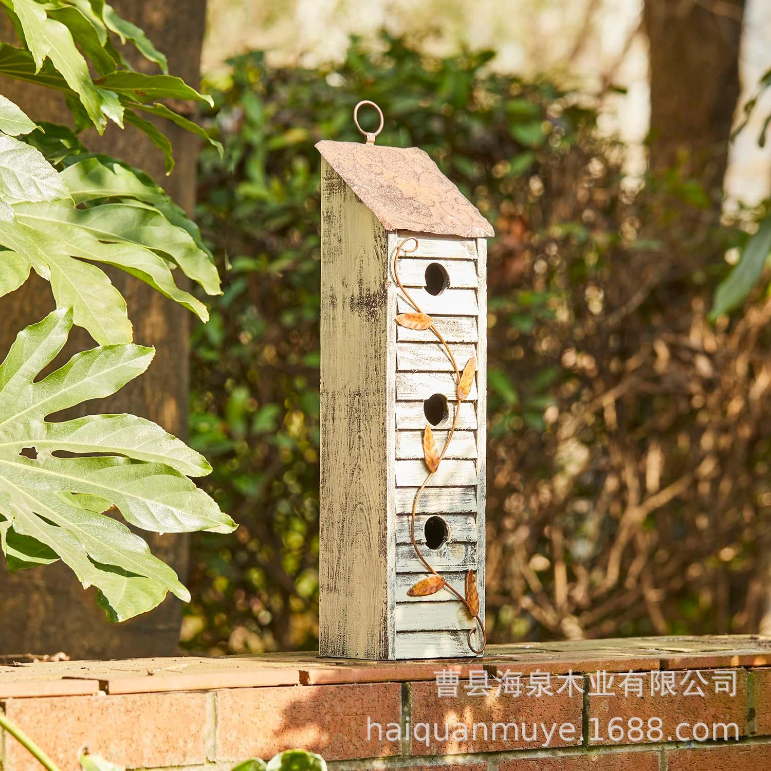 Rumah burung kreatif luar ruangan Sarang Burung taman rumah burung pengumpan burung kayu kandang burung beo peliharaan persegi