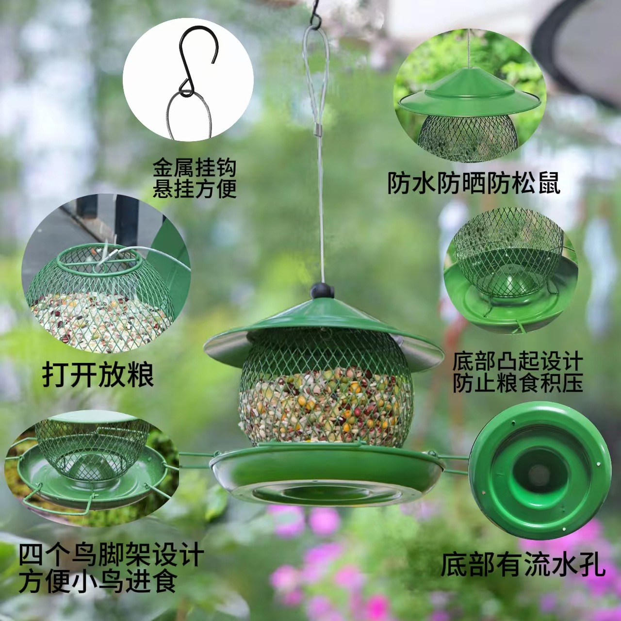Pengumpan burung otomatis, gaya pastoral luar ruangan menggantung dengan baffle tupai