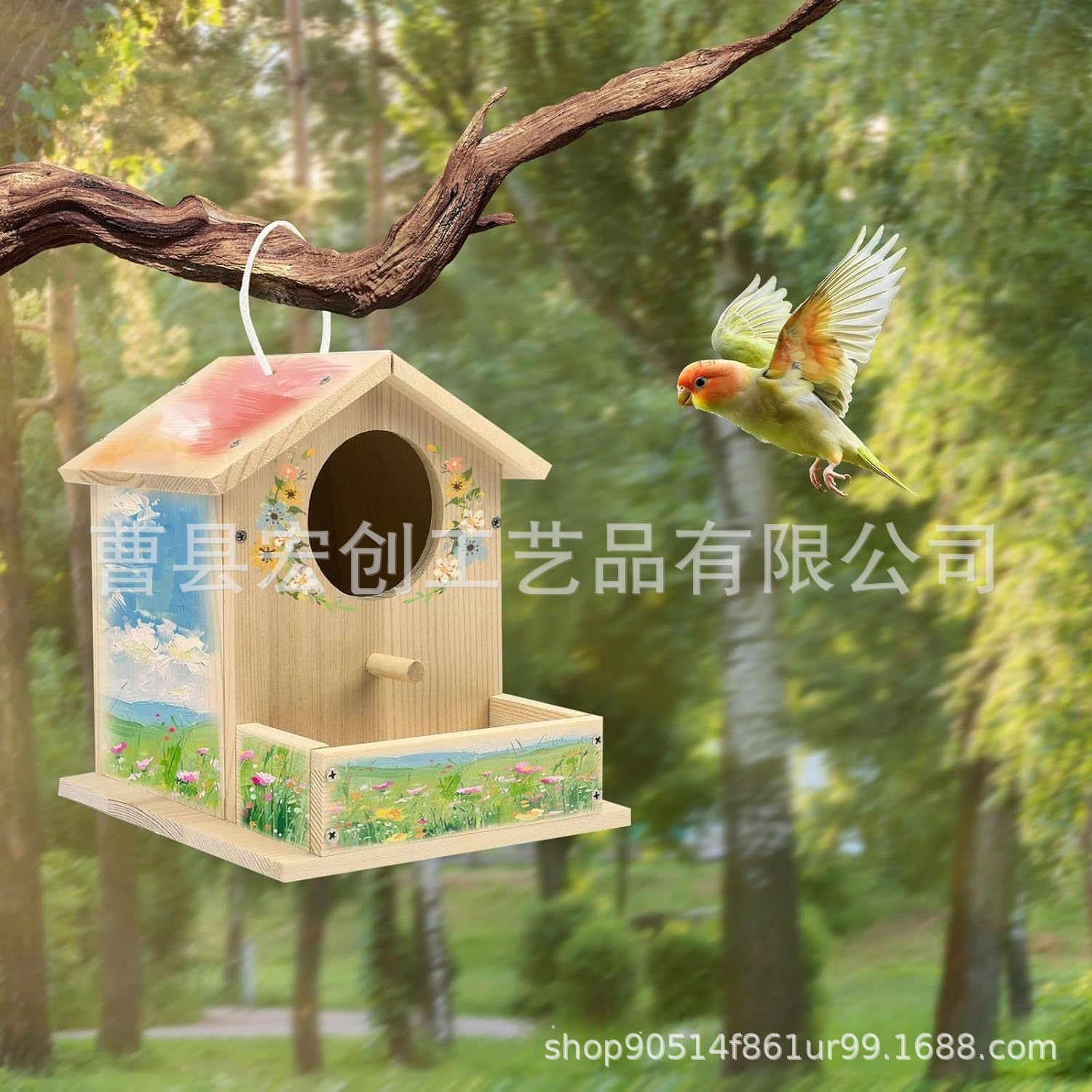 Kayu Rumah Burung Luar Ruangan Gantung Pohon Rumah Burung Kecil Pengumpan Hewan Peliharaan Anak-anak DIY Dekorasi Liontin