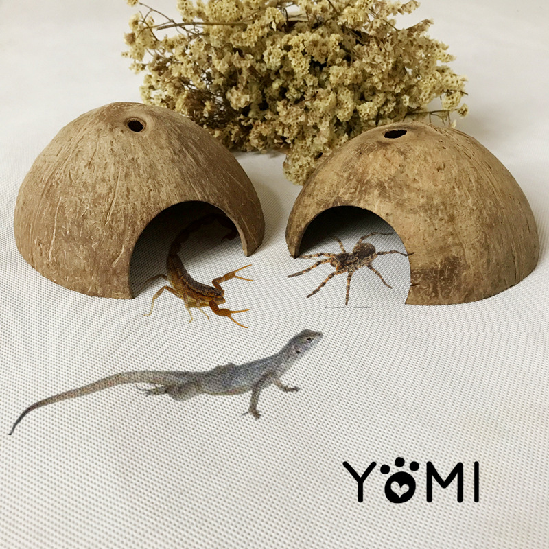 Kura-kura laba-laba kadal kalajengking tanduk katak perayap hewan peliharaan kecil cangkang kelapa bersembunyi rumah sarang gua