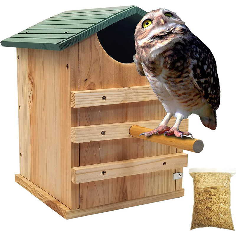 Rumah burung hantu berteriak kayu rumah burung hantu rumah burung hantu kayu persegi panjang sarang burung terbuka