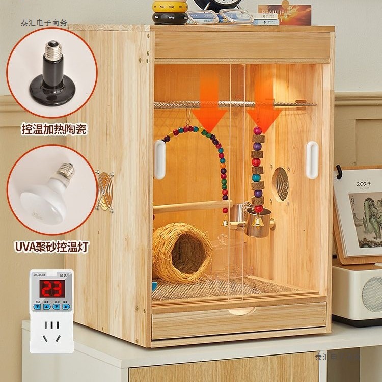 Kotak penangkaran kandang burung Shangtian hewan peliharaan kotak pembiakan kulit harimau peony Xuanfeng hangat inkubasi perlengkapan sarang burung kayu