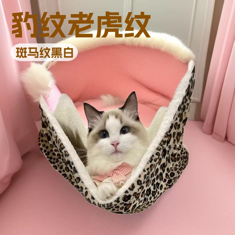 Tempat tidur gantung kucing motif leopard, motif harimau, motif zebra, motif titik hitam putih, alas tidur kucing, perlengkapan hewan peliharaan, kantung tidur kucing