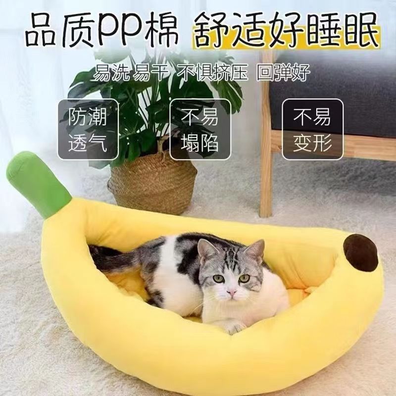 Sarang kucing kennel pisang universal empat musim Teddy French bucket Bichon Corgi perlengkapan hewan peliharaan hangat musim dingin dan sedang