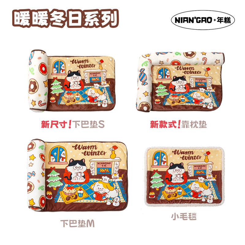 Selimut kue beras NianGao, bantalan kucing dan anjing baru musim gugur dan musim dingin, selimut sarang ember hangat flanel, bantalan dagu hangat