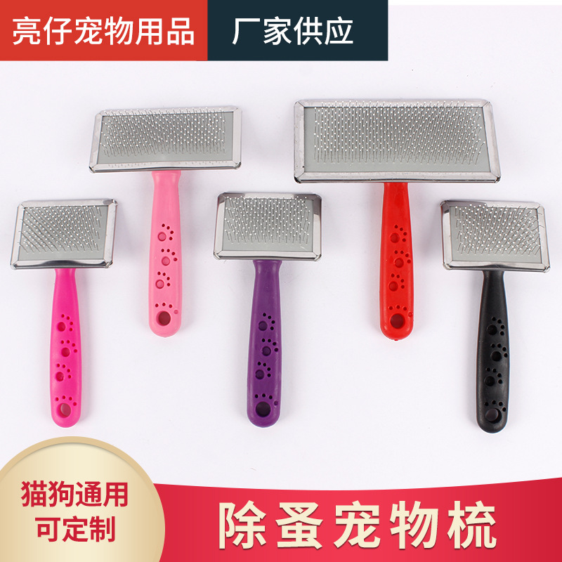 Sisir penghilang bulu kecantikan pembersih bulu hewan peliharaan pegangan berwarna sisir terbuka pijat sisir anjing kucing untuk rambut mengambang sisir jarum baja tahan karat