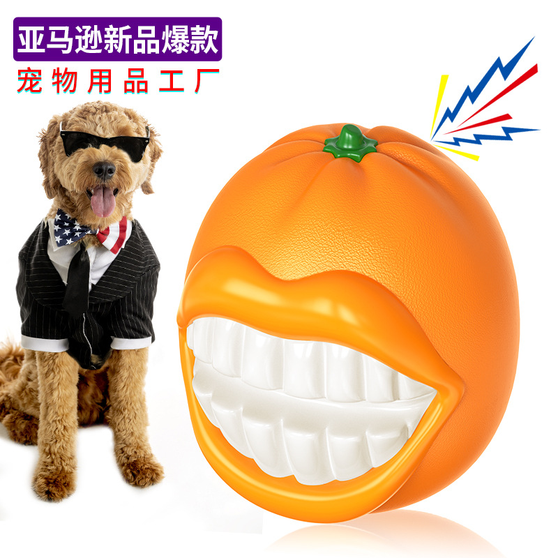 Pabrik perlengkapan hewan peliharaan mainan anjing tebal oranye suara bola Gerinda tahan gigit lintas batas Amazon populer baru