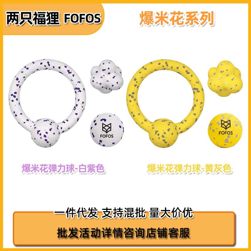 FOFOS mainan anjing seri popcorn, bola mainan molar tahan gigitan untuk anjing besar