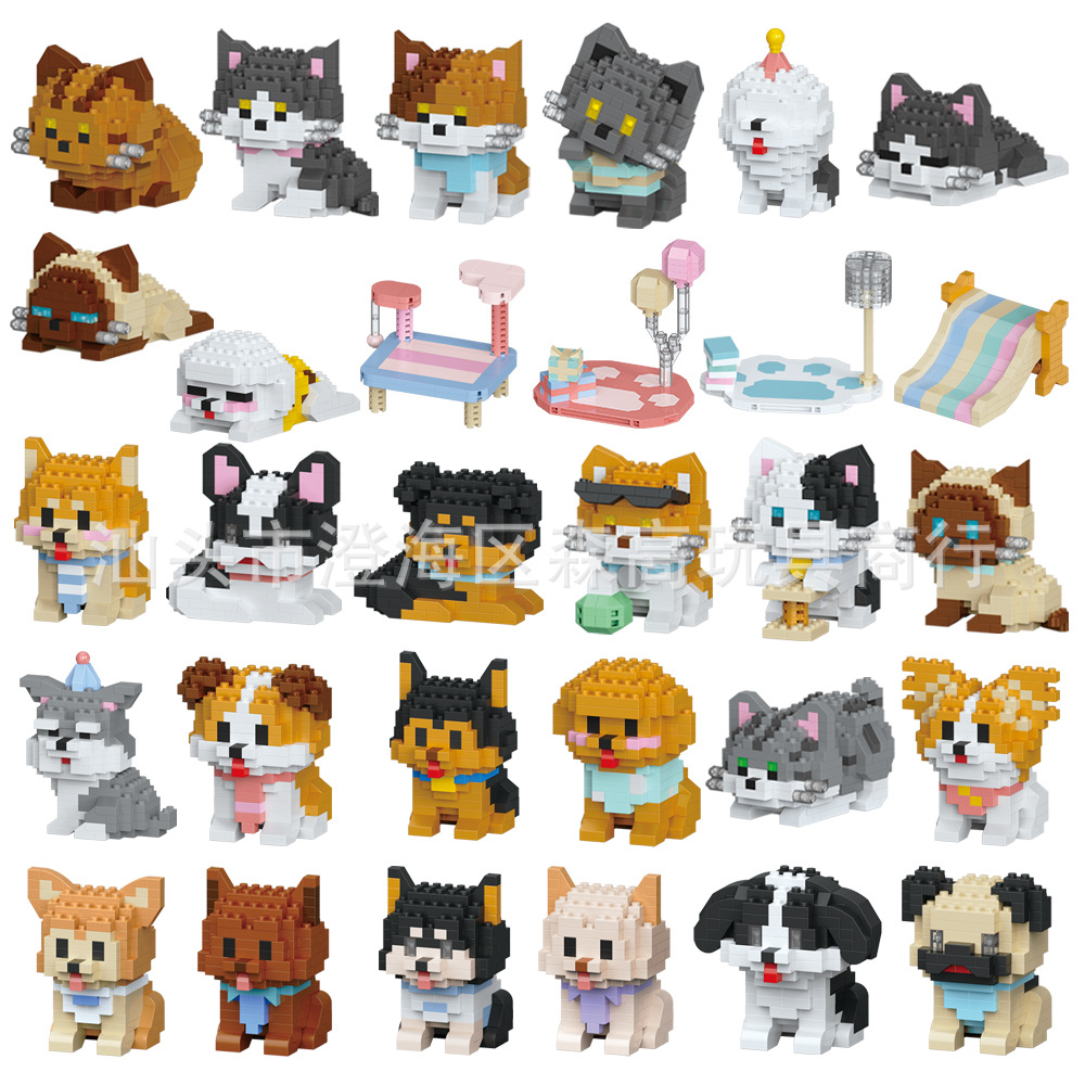 [Grosir] Boneka kartun kucing dan anjing dengan blok bangunan yang kompatibel dengan dekorasi puzzle anak-anak Lego