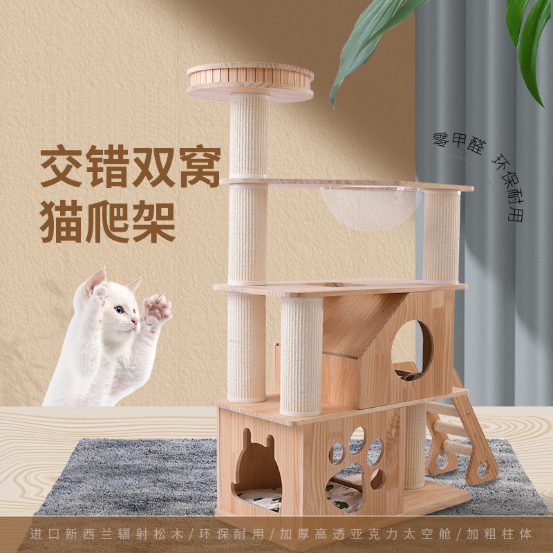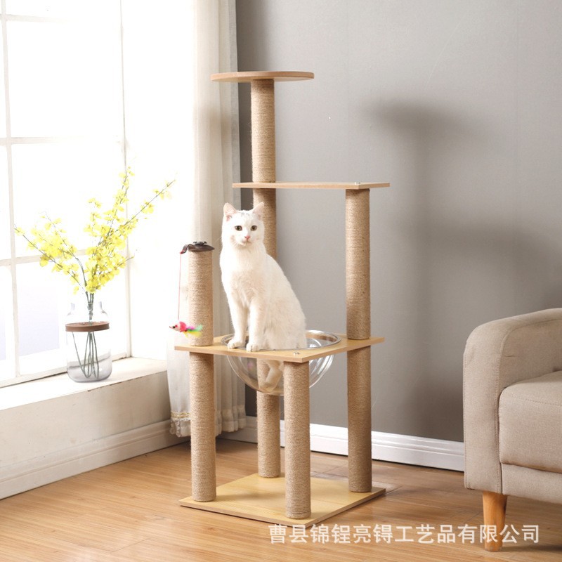 Pemrosesan disesuaikan kayu solid kucing memanjat bingkai sarang kucing sisal kucing papan gores kucing pohon kucing perlengkapan kucing hewan peliharaan mainan kucing kapsul ruang