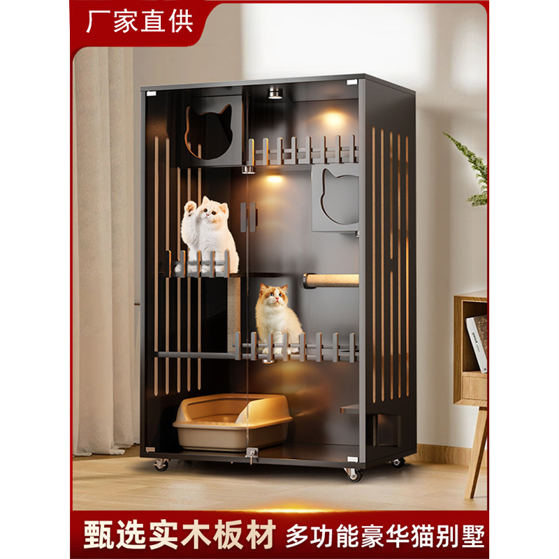 Rumah kucing kayu padat untuk kucing, sarang kucing rumah bingkai panjat tebing kucing mewah dalam ruangan terintegrasi kandang kucing panorama