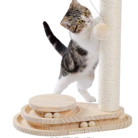 Tali Linen Kayu Rak Panjat Kucing Pohon Kreatif Kolom Genggam Kucing Satu Produk Hewan Peliharaan Rak Panjat Kucing Lapisan Ganda Tahan Genggam Tahan Genggam