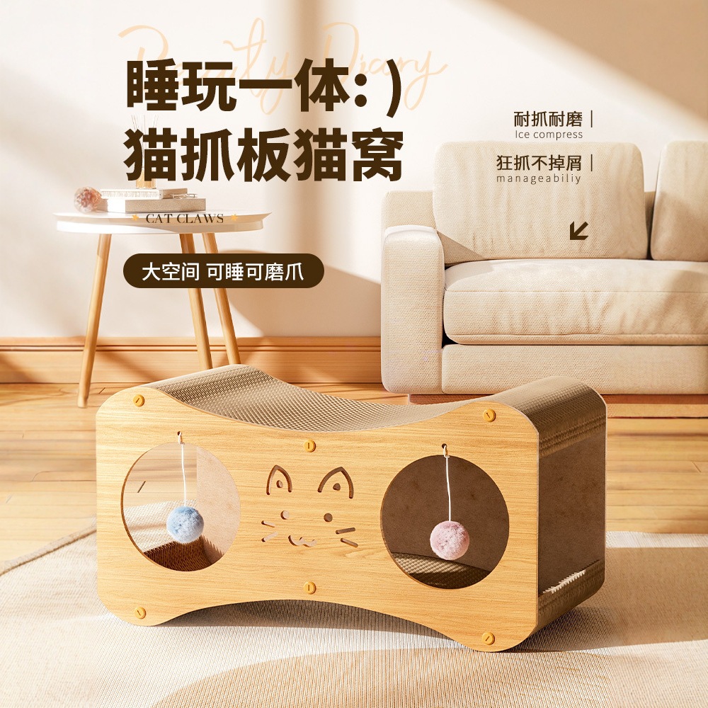 Papan Genggam Kucing Kayu Kucing Multifungsi Sarang Kucing Tahan aus Tahan Genggam Kertas Bergelombang Dapat Diganti Inti Dalam Kucing Bermain Lucu Kucing