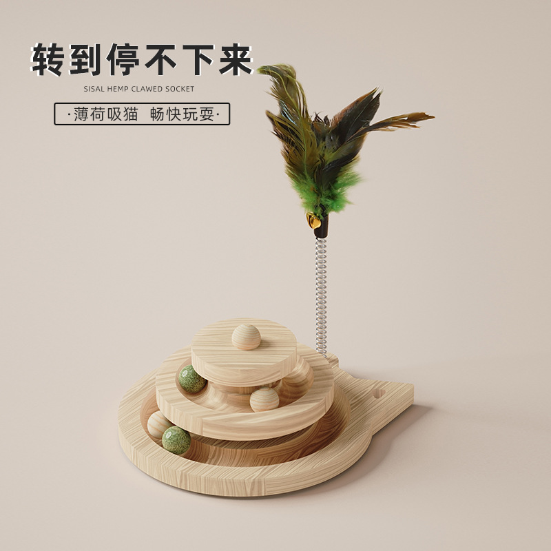 Menara kucing baru, empat lapisan menara kucing menghilangkan bola mainan kaku tongkat kucing lucu meja putar mainan hewan peliharaan grosir