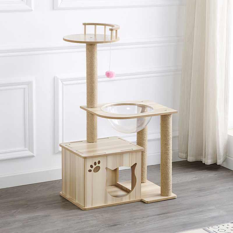 Rak memanjat kucing satu buah, rak pengiriman perlengkapan hewan peliharaan terintegrasi besar, rak memanjat kucing kayu kapsul luar angkasa