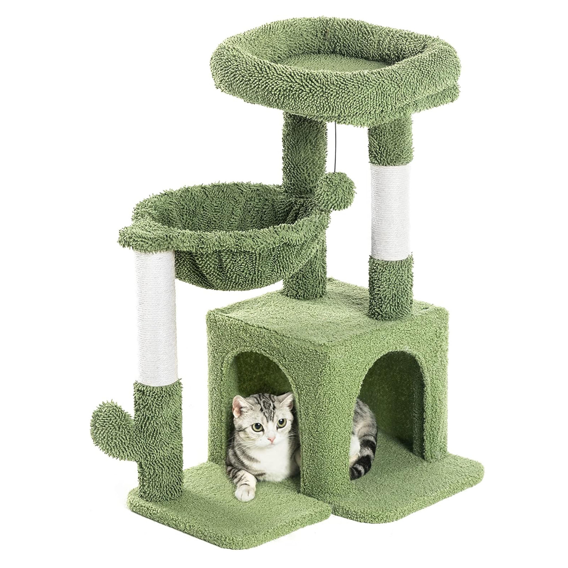 Tanaman kaktus kucing hijau bingkai panjat pohon kucing anak kucing Nyaman villa sisal menggaruk post