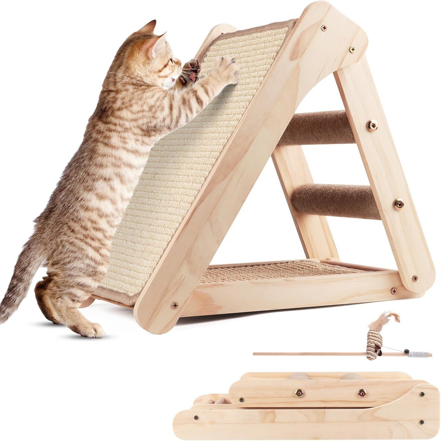 Papan Genggam Kucing Mainan Kucing Kayu Bola Genggam Kucing Kelinci Cakar Tali Linen Tali Kucing Rak Genggam Kucing Tahan Lama Barang Hewan Peliharaan